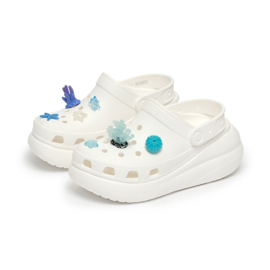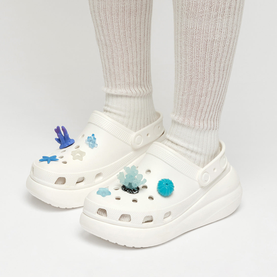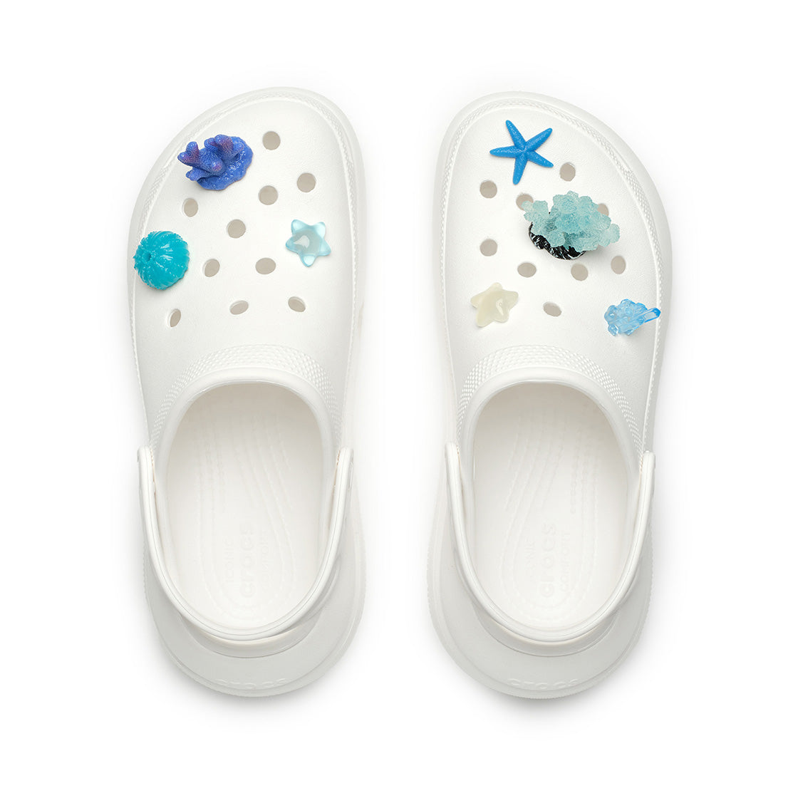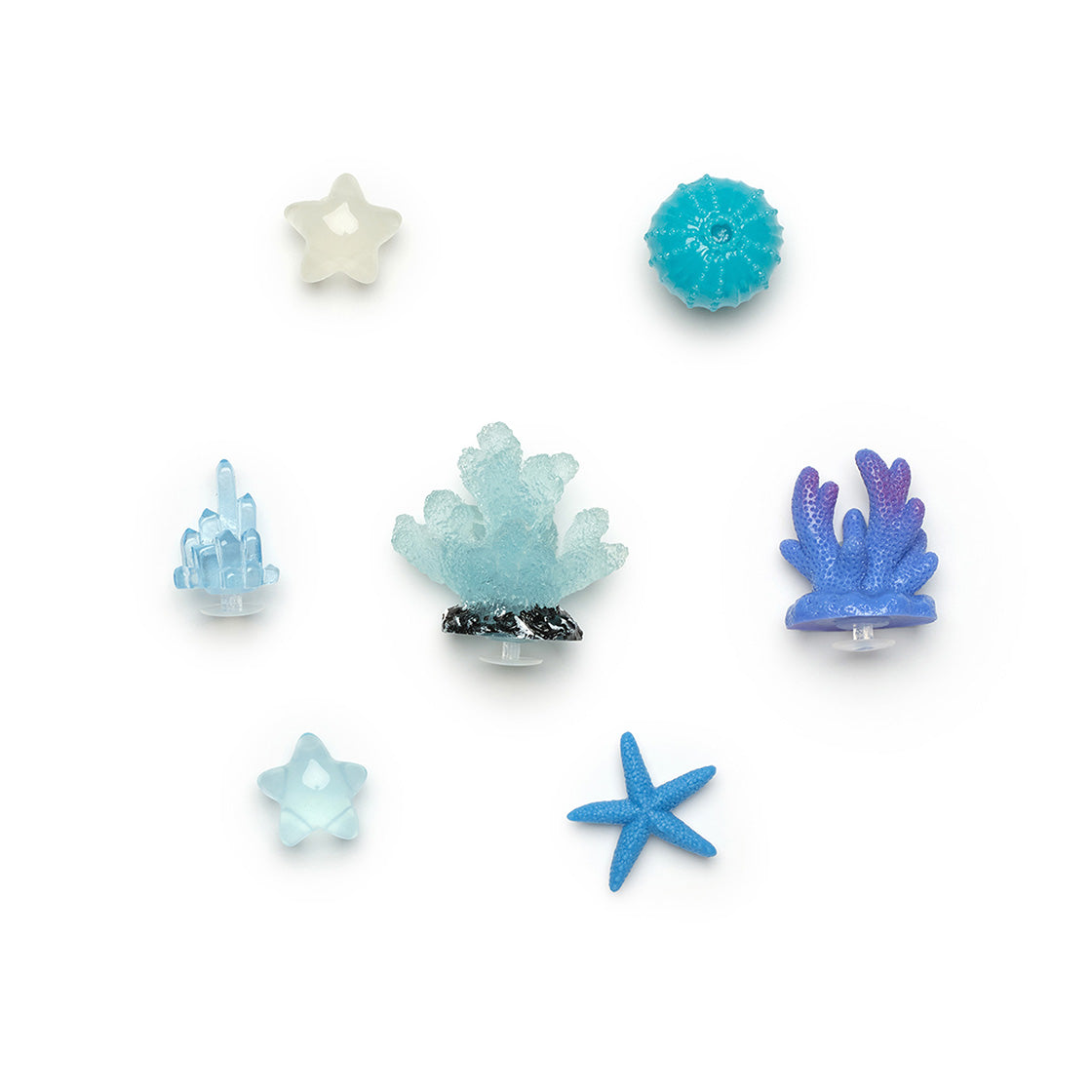 このピップセットには、きらめくブルーの海をイメージしたチャームが7つ入っています。サンゴやヒトデのモチーフがあしらわれています。宝物のようなアクセントで、靴に海の魔法を添えましょう。