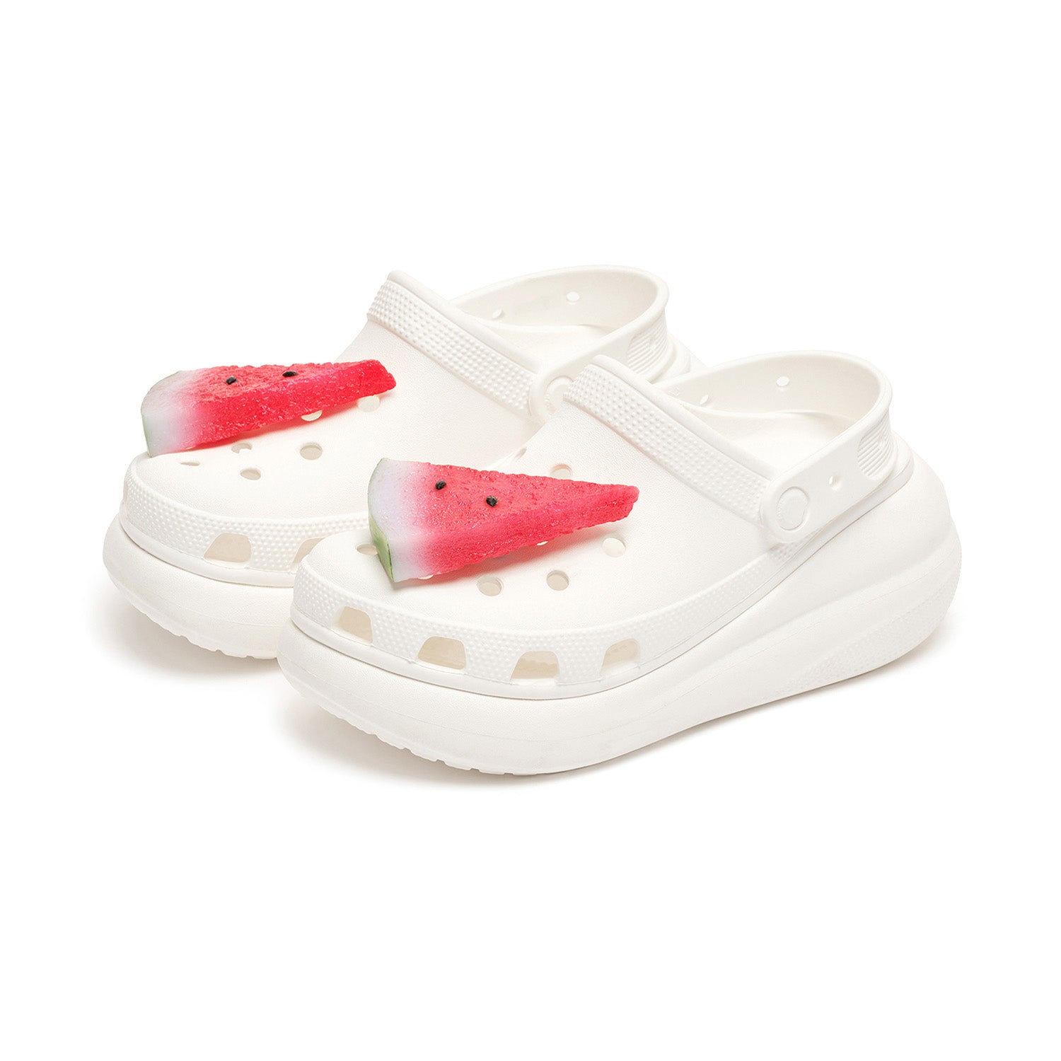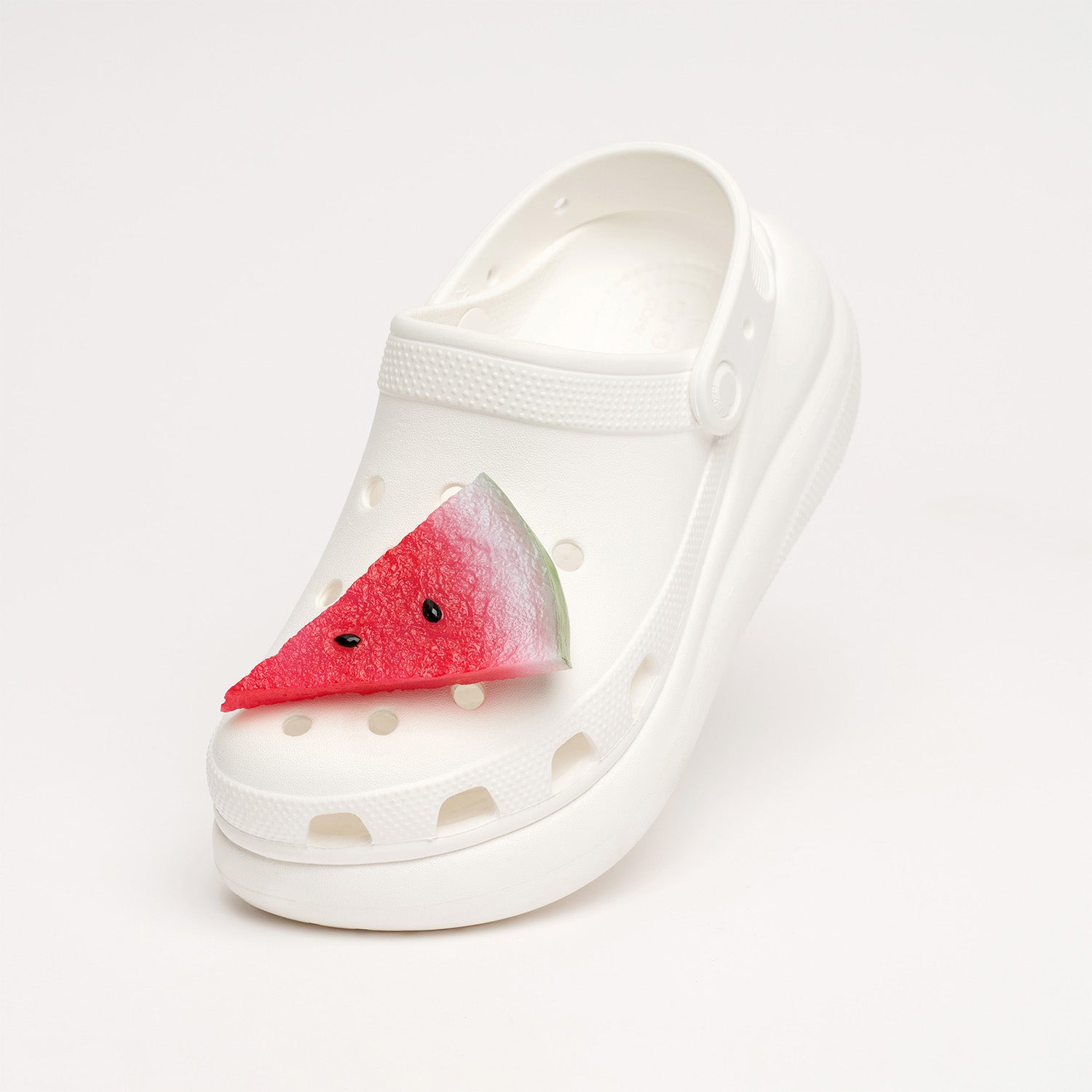 This single pip features a juicy slice of watermelon topped with sparkling seed-shaped beads. Its vibrant look instantly adds a splash of coolness to your style.