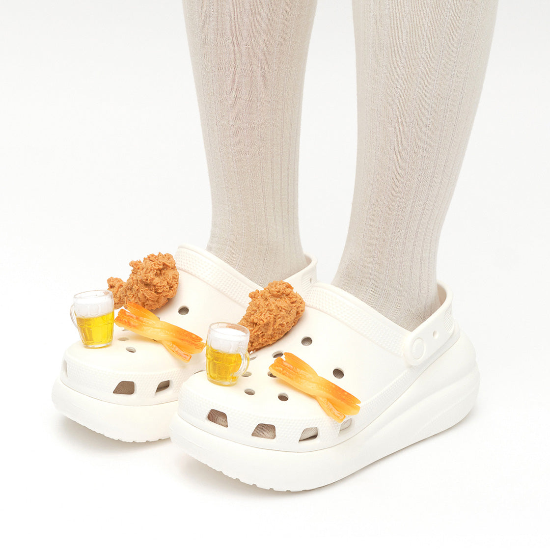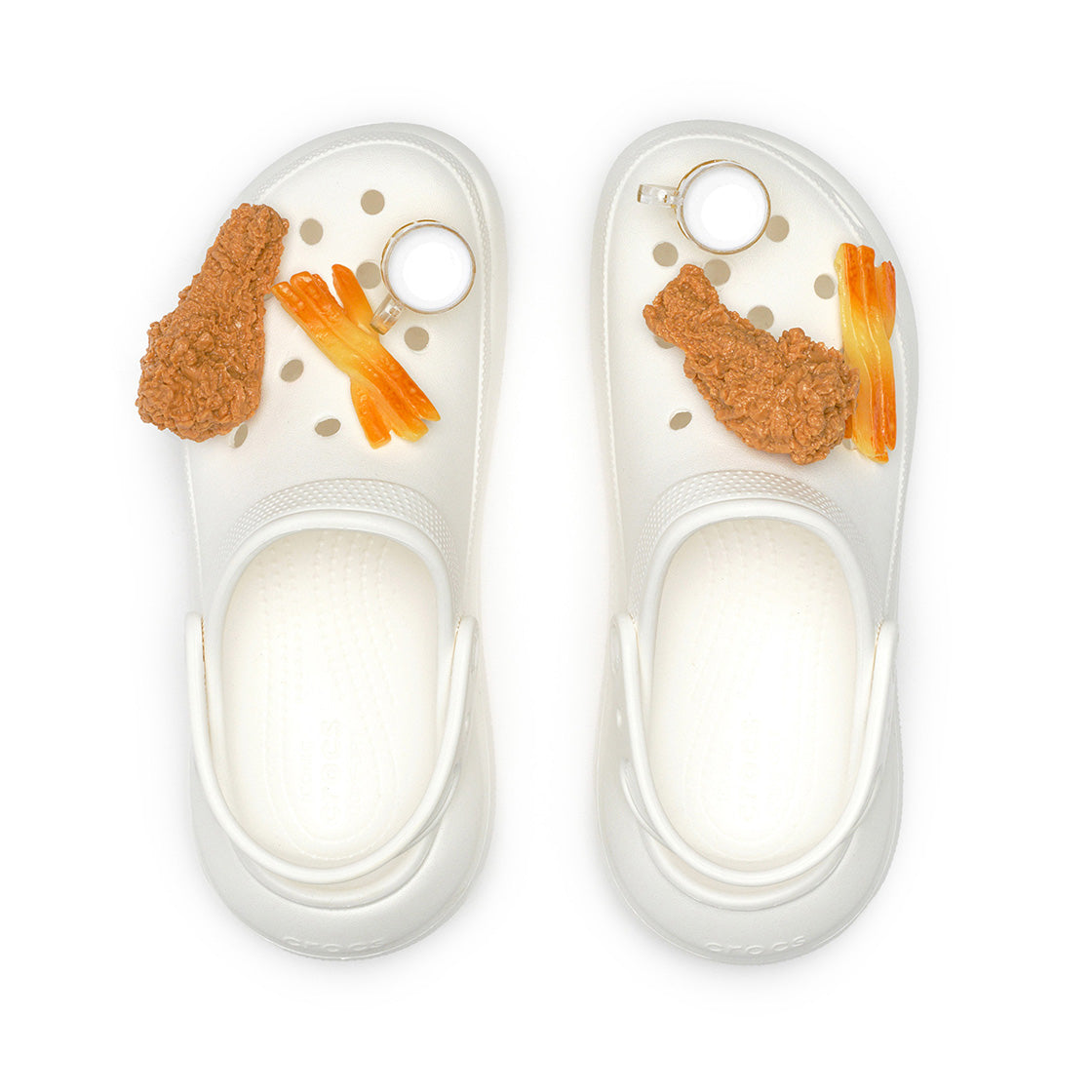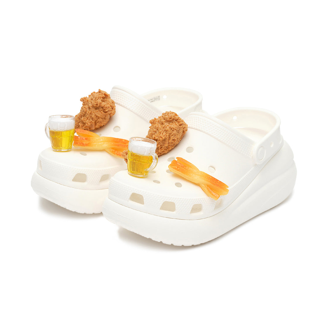 This is a pip set featuring life-sized models of fried chicken and French fries, paired with a miniature beer. The set consists of three pips in total.