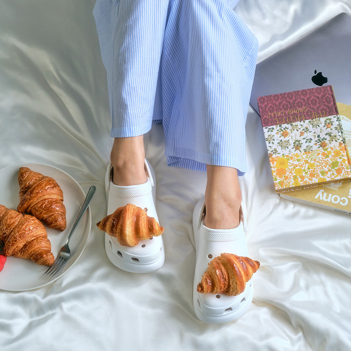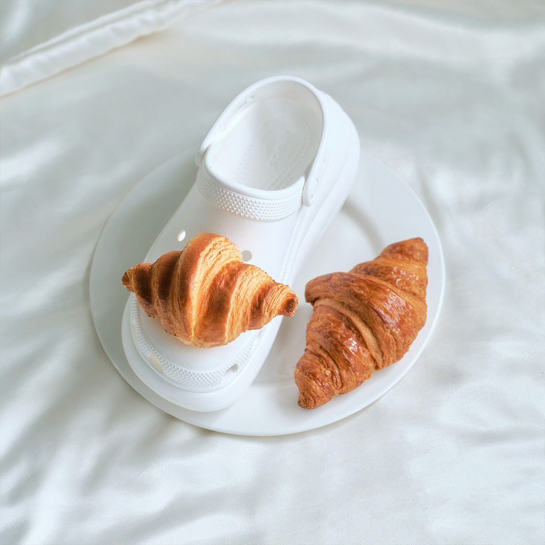 This is a single pip charm shaped like a croissant, featuring a lifelike appearance and irresistibly soft texture. It’s a delight to look at — and just as satisfying to touch.