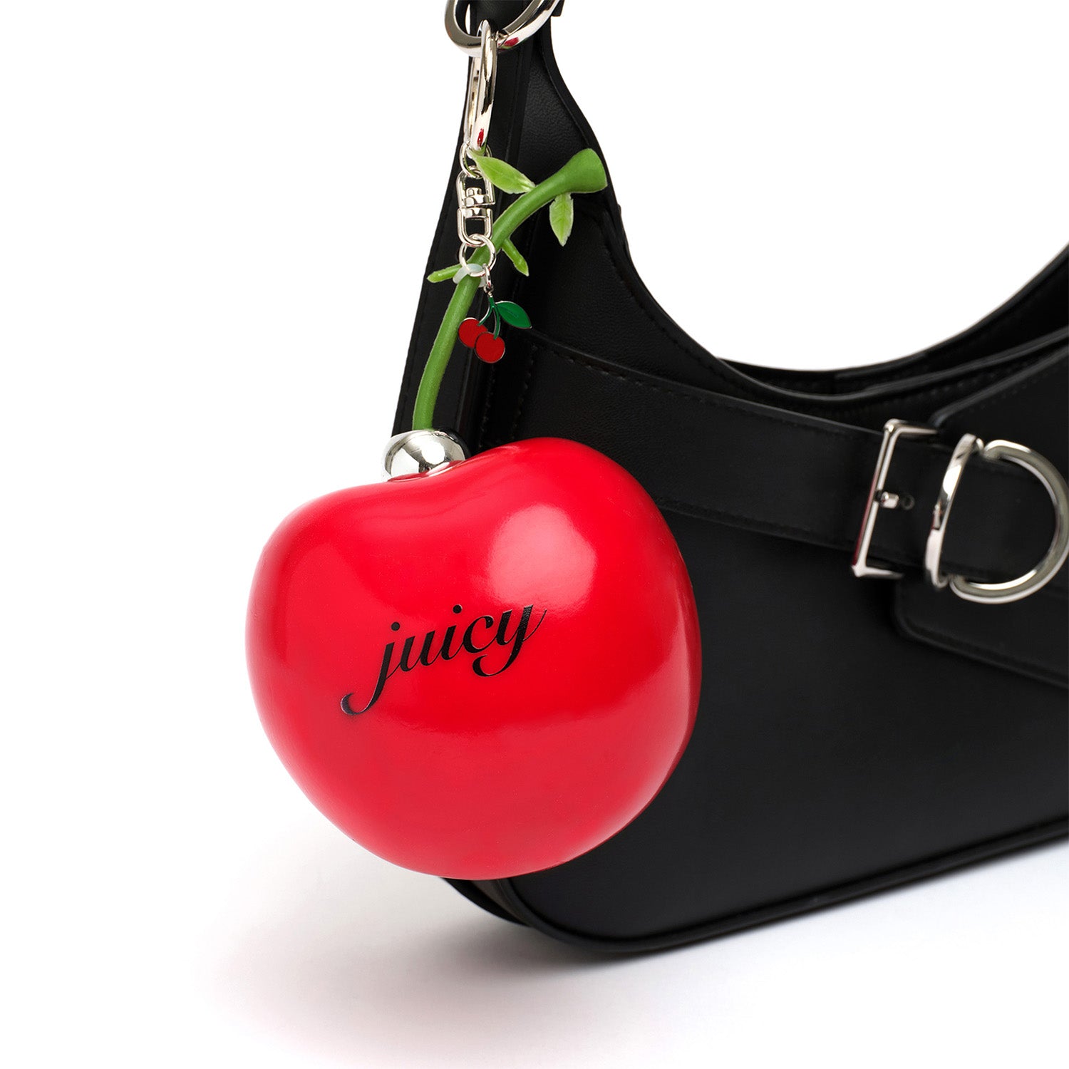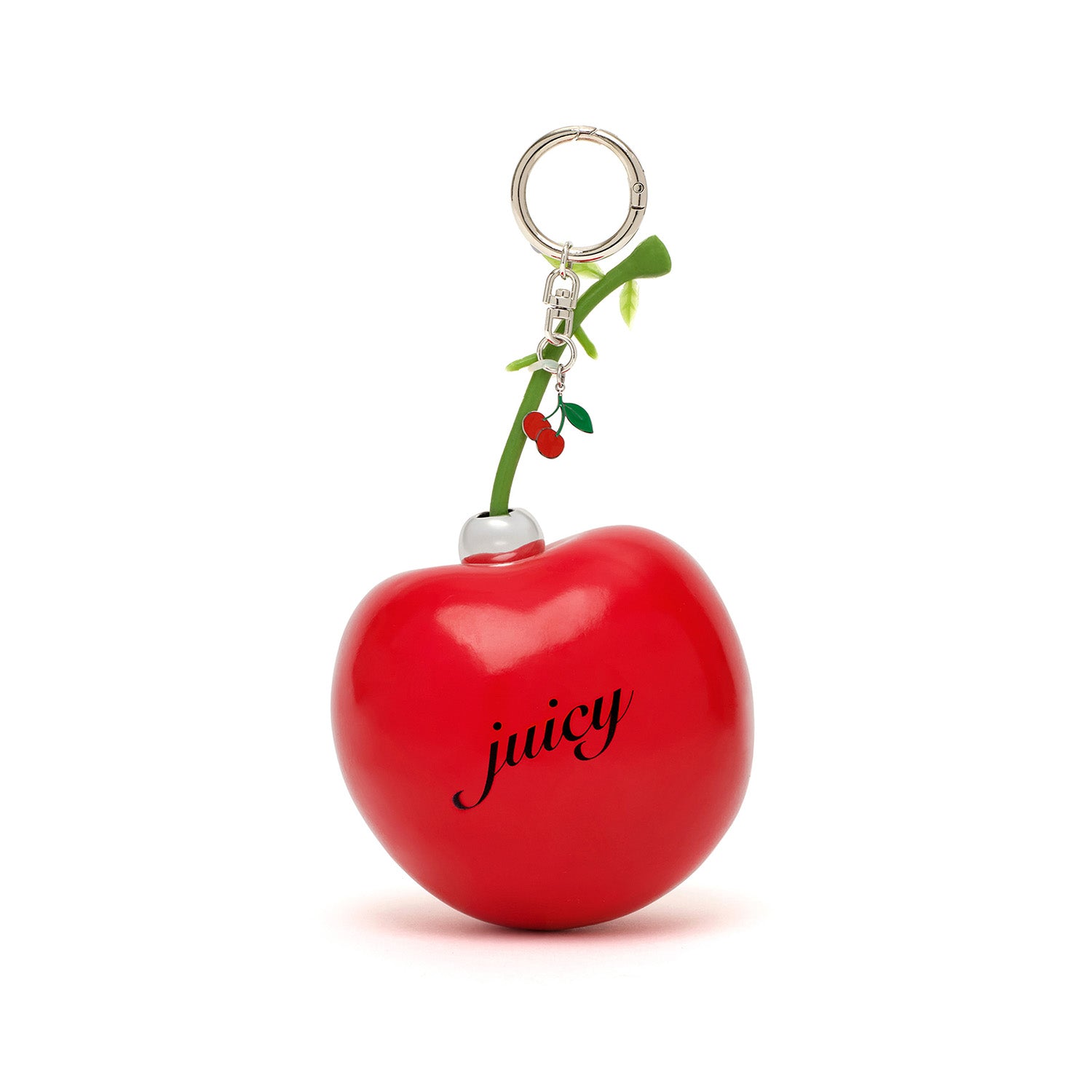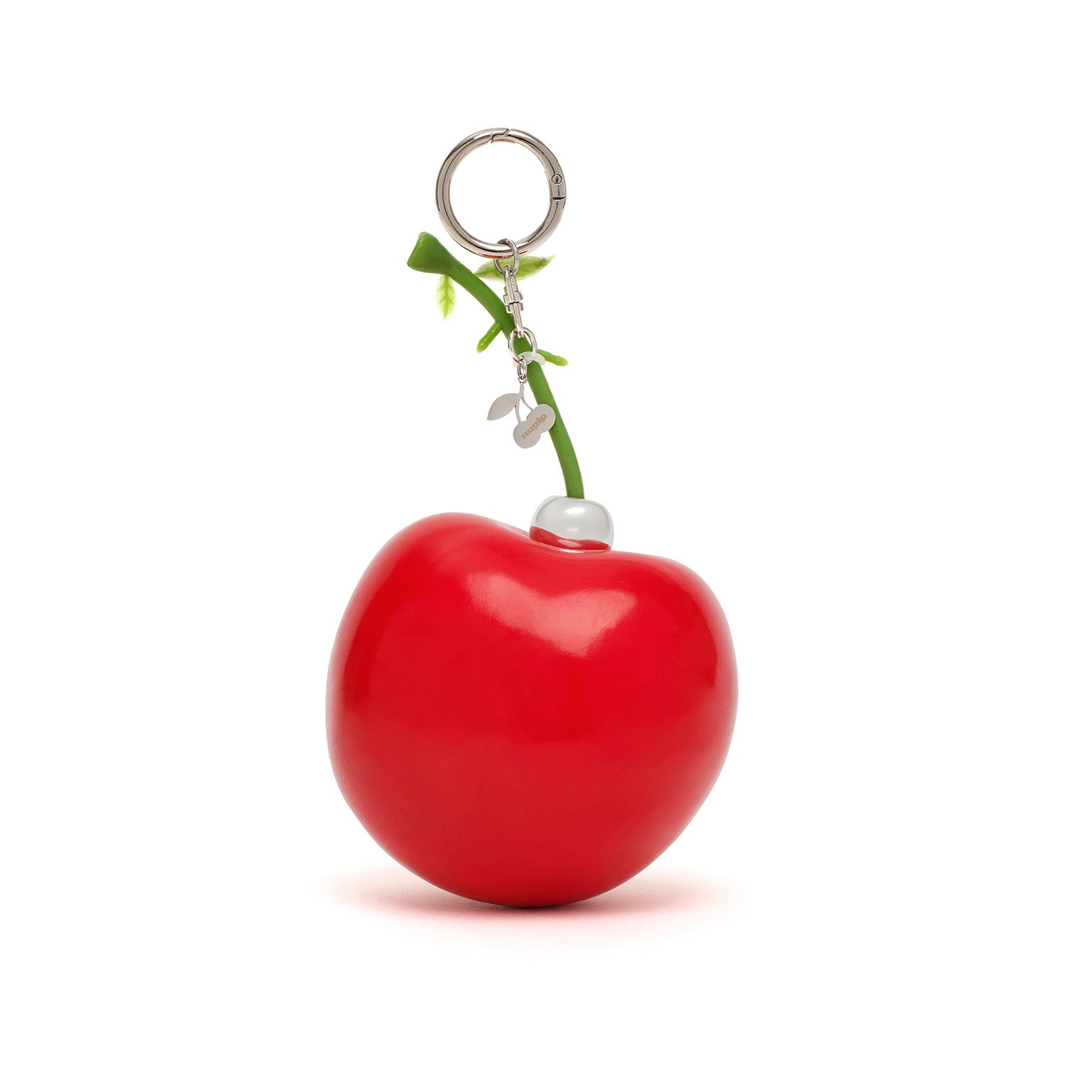 This cherry-shaped keyring adds a bold pop to any look with its oversized design. A tiny silver cherry charm adds a playful and charming touch.