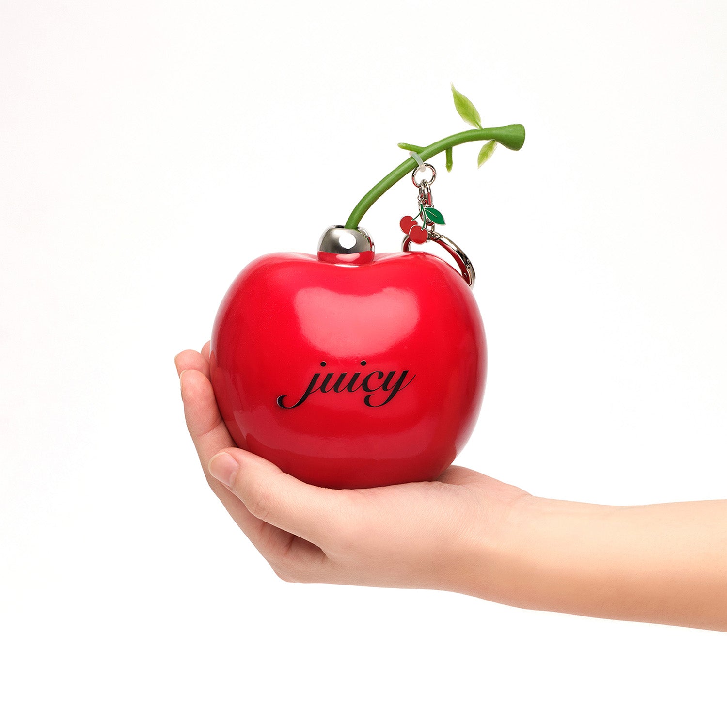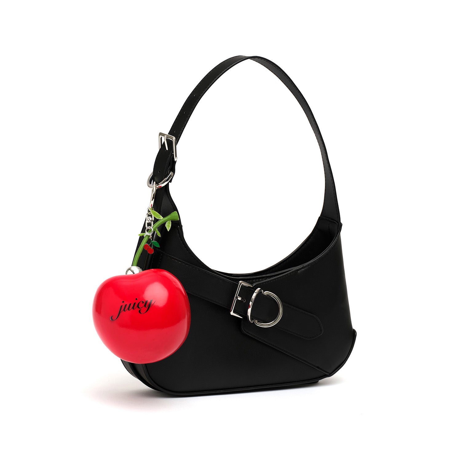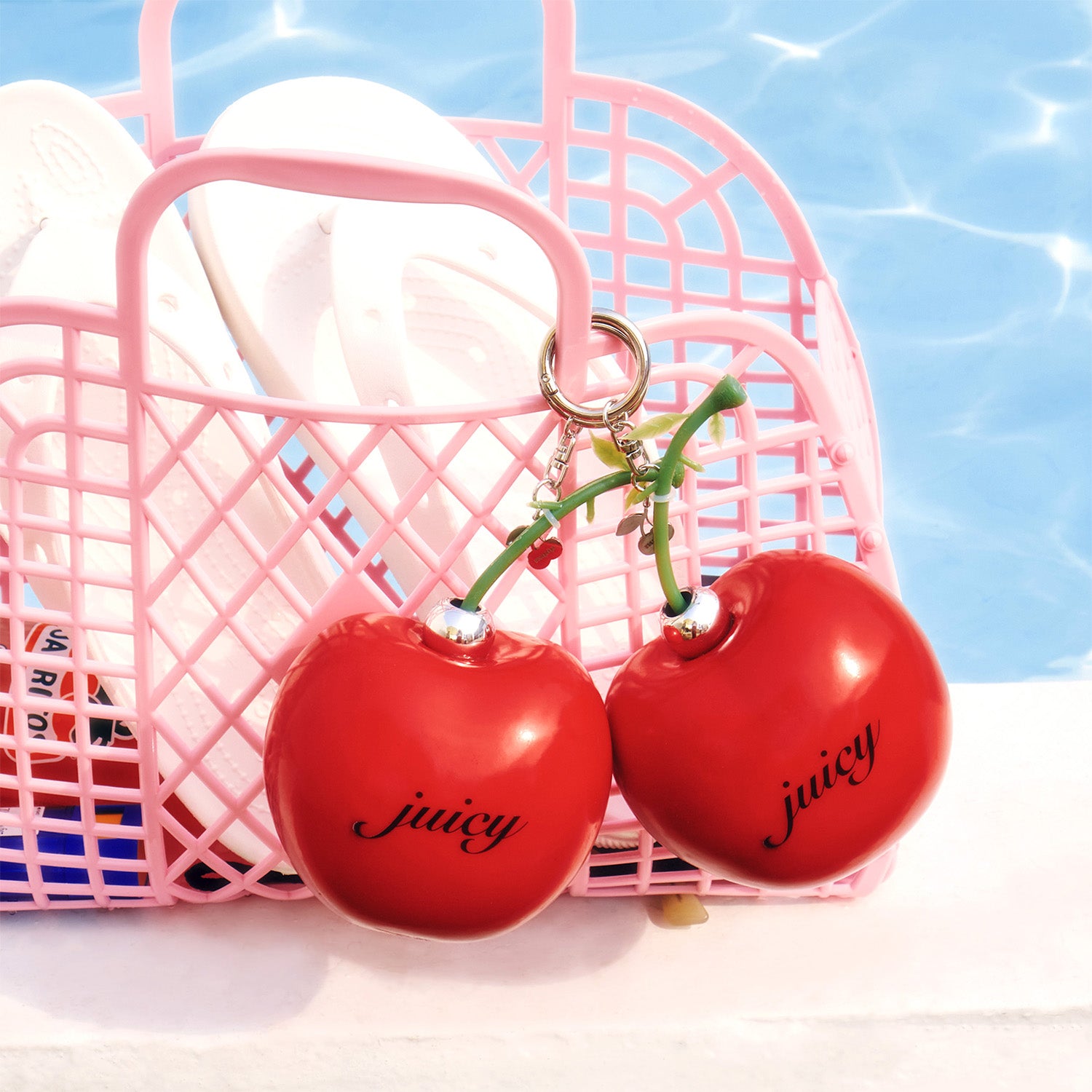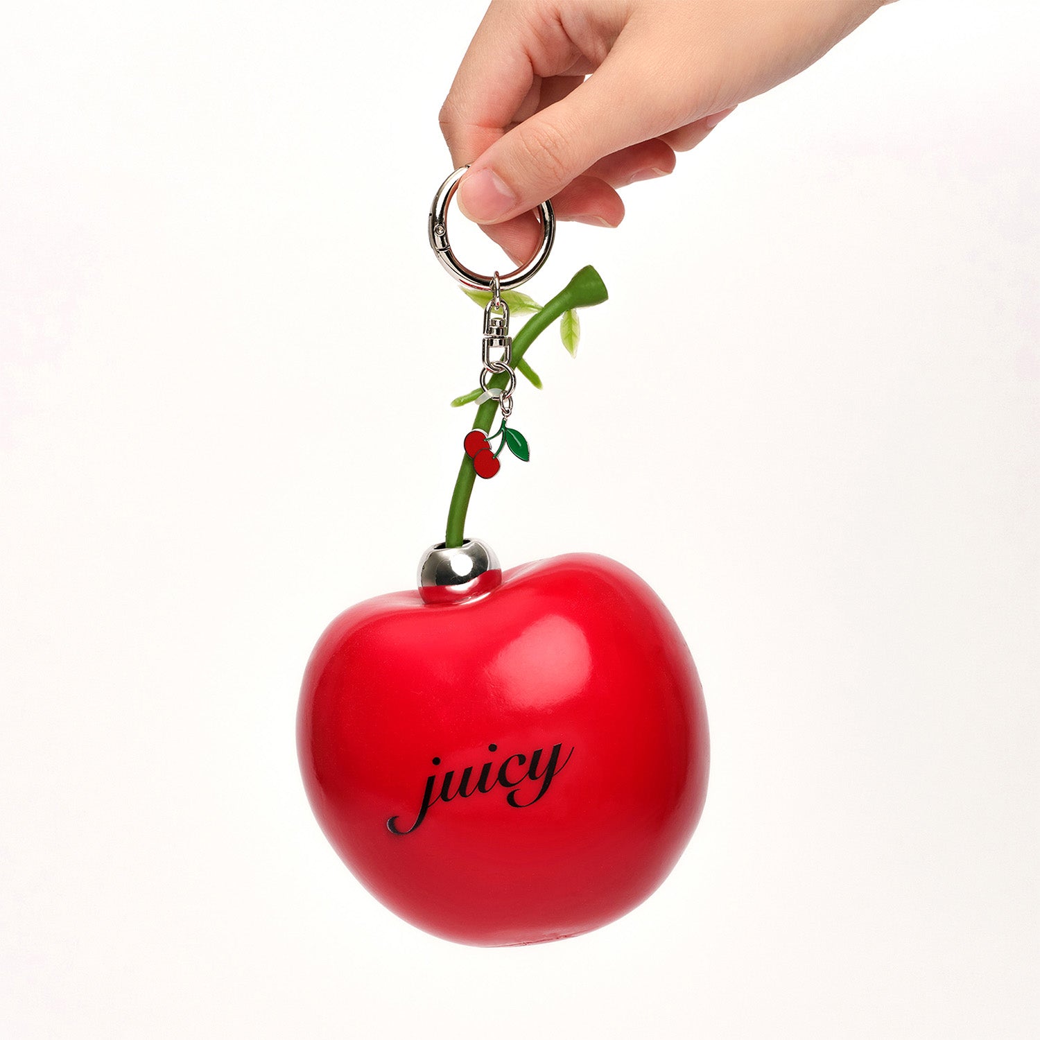 This cherry-shaped keyring adds a bold pop to any look with its oversized design. A tiny silver cherry charm adds a playful and charming touch.