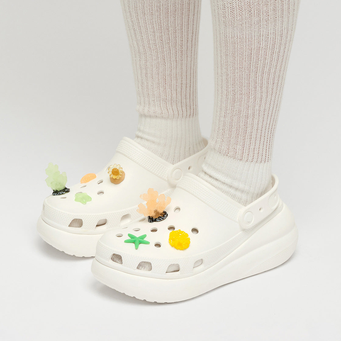 This pip set includes 7 ocean-themed charms in refreshing green tones, inspired by coral and starfish. Add a sparkling underwater accent to your shoes, like treasures from the sea.