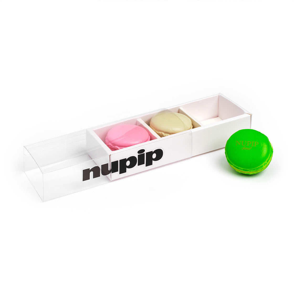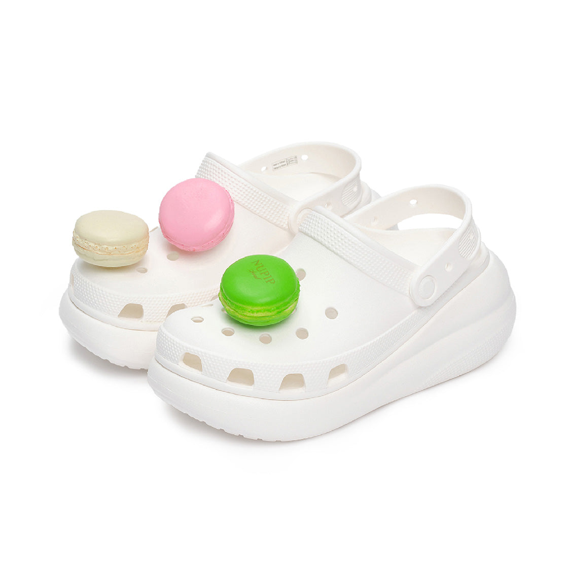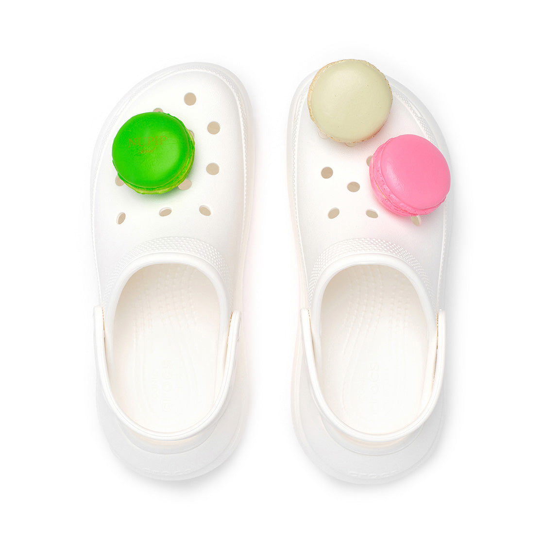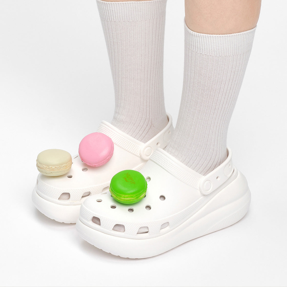 This pip set includes three life-sized macaron models. Perfect for adding a sweet accent to your shoes, the set comes packaged in a charming macaron box.