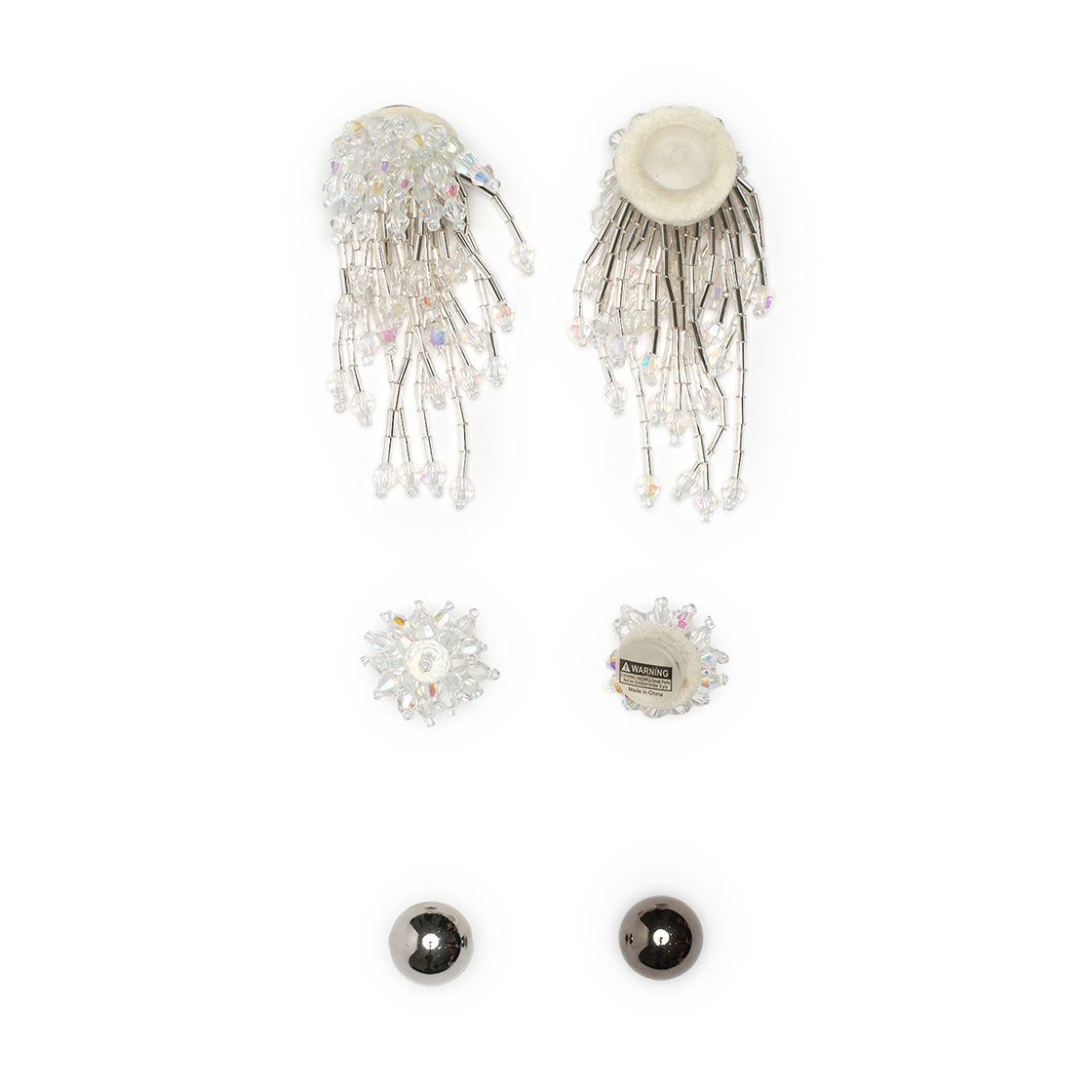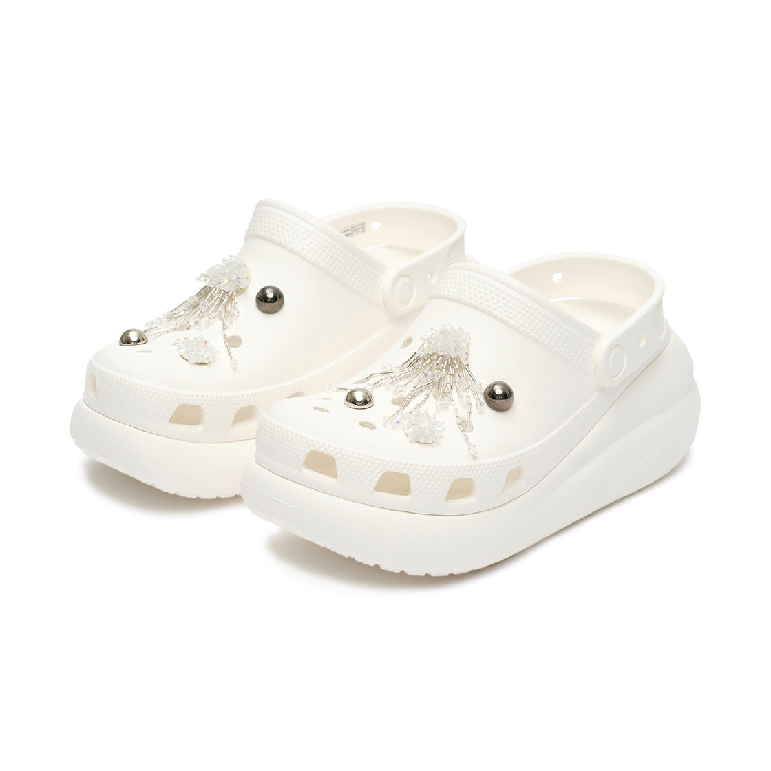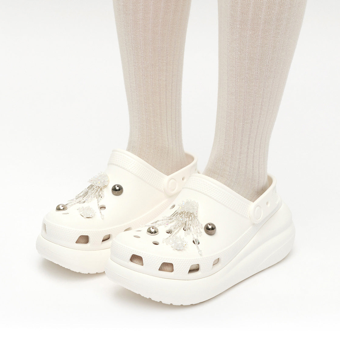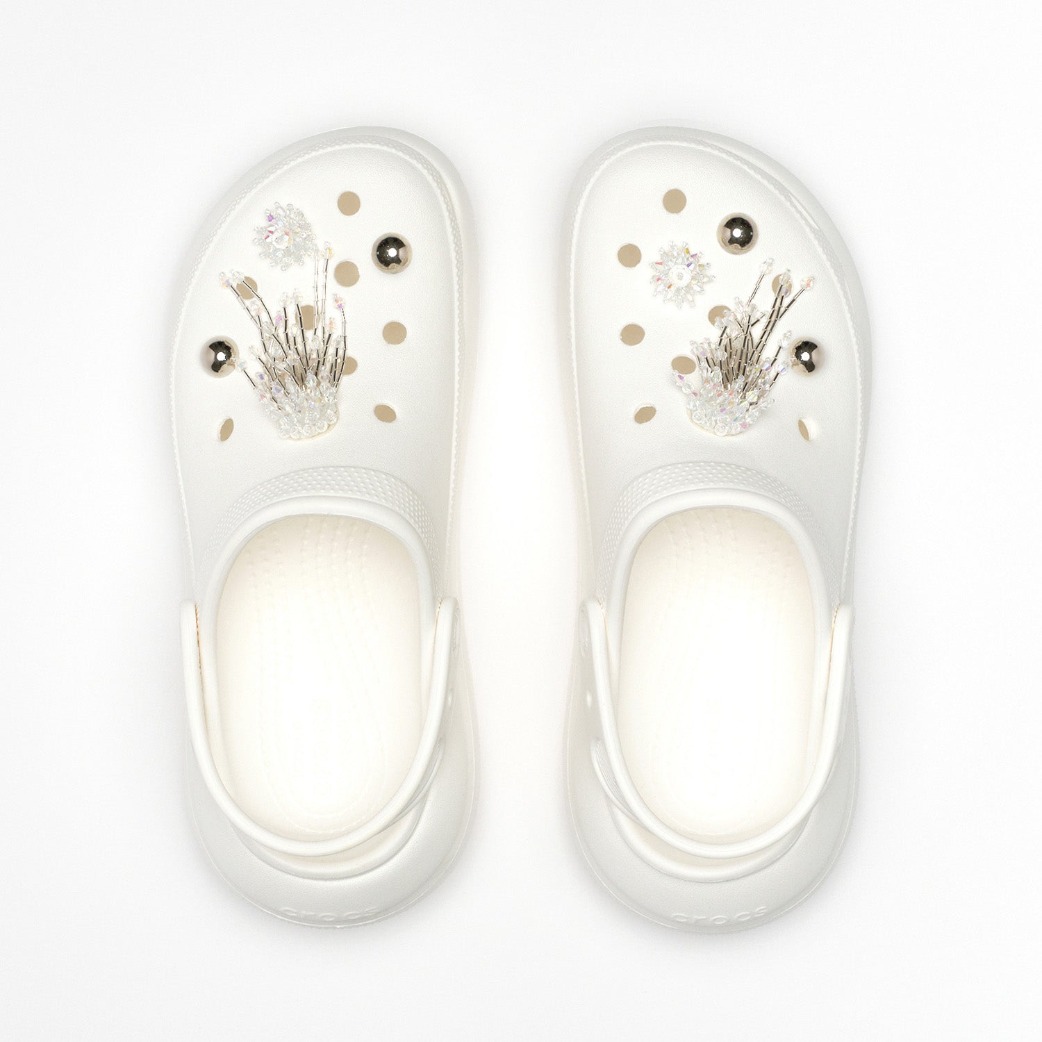 This pip set includes four handmade charms in silver tones. Featuring a drop-shaped bead, round silver metal ornament, and mini-sized beads, this set is perfect for adding a stylish touch to your shoes.