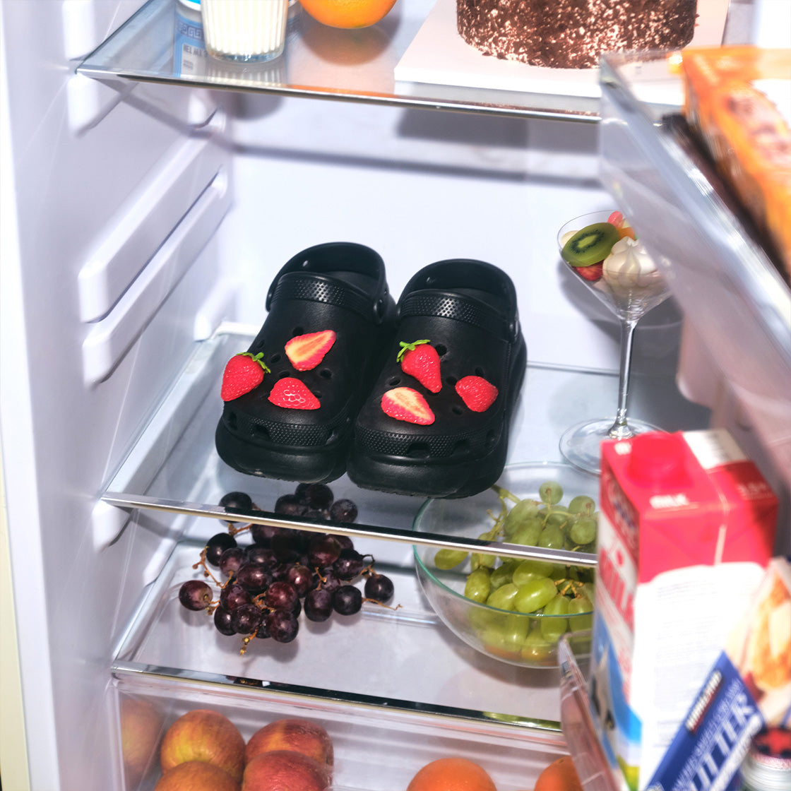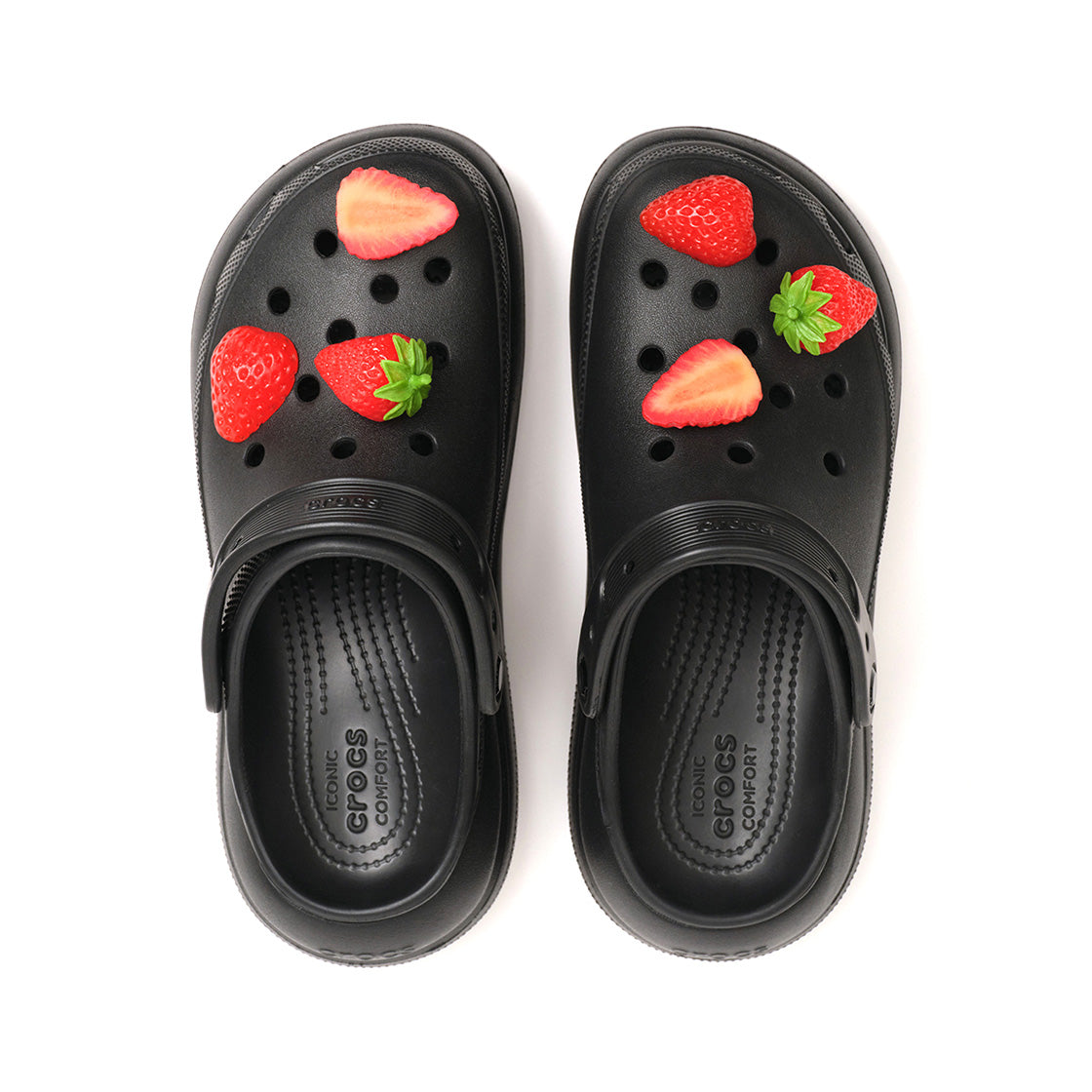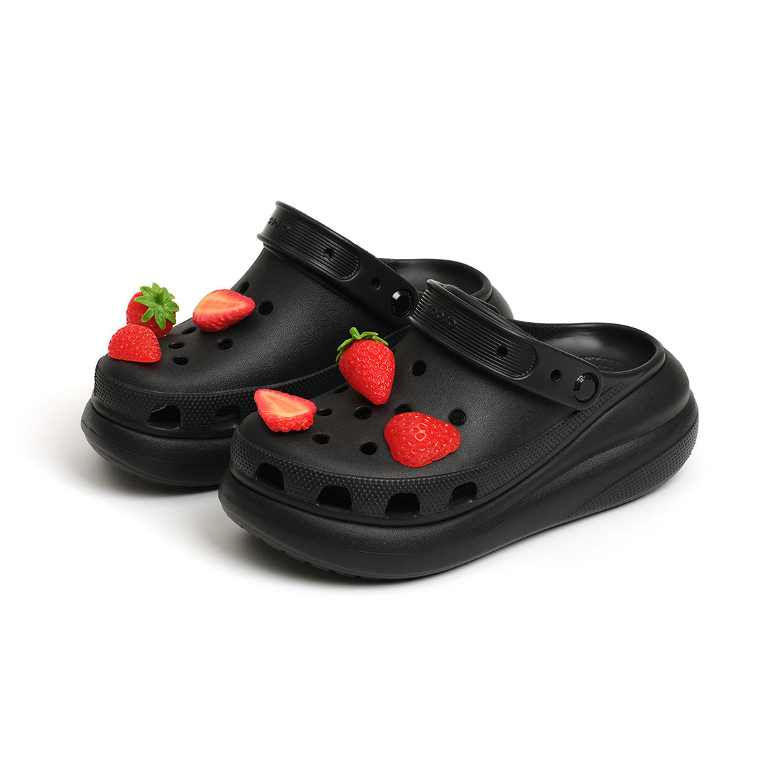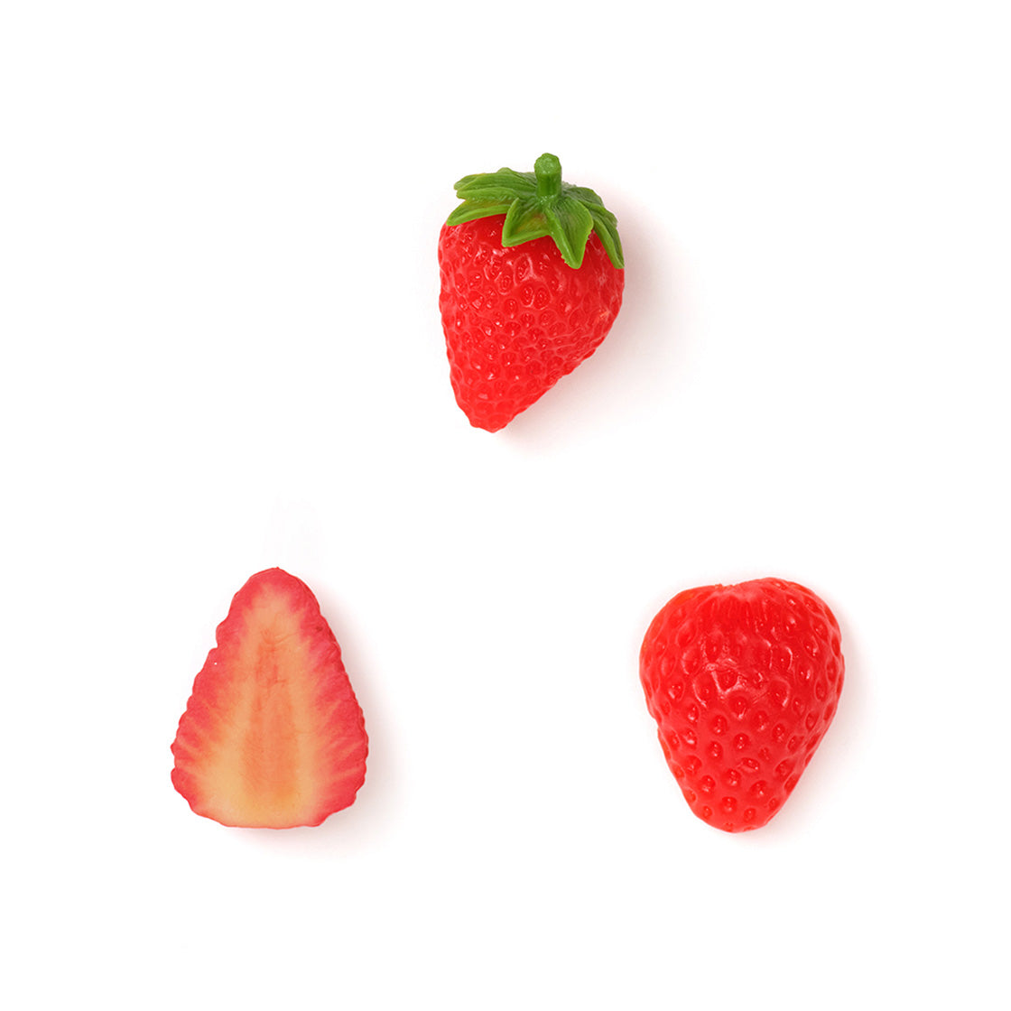 The strawberry pip set includes three life-sized strawberry pieces in one set. It features a sliced strawberry, a half-cut strawberry, and a whole strawberry — adding a juicy, playful touch to your look.