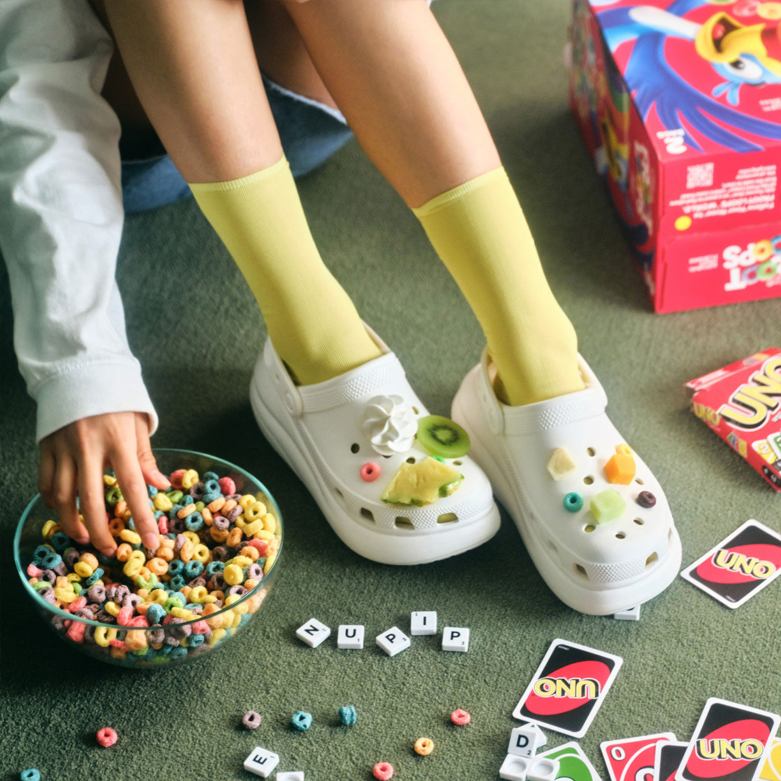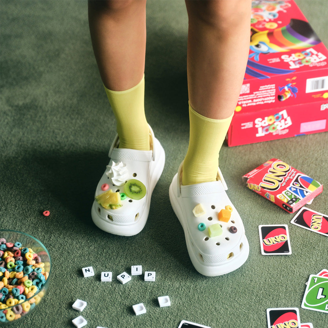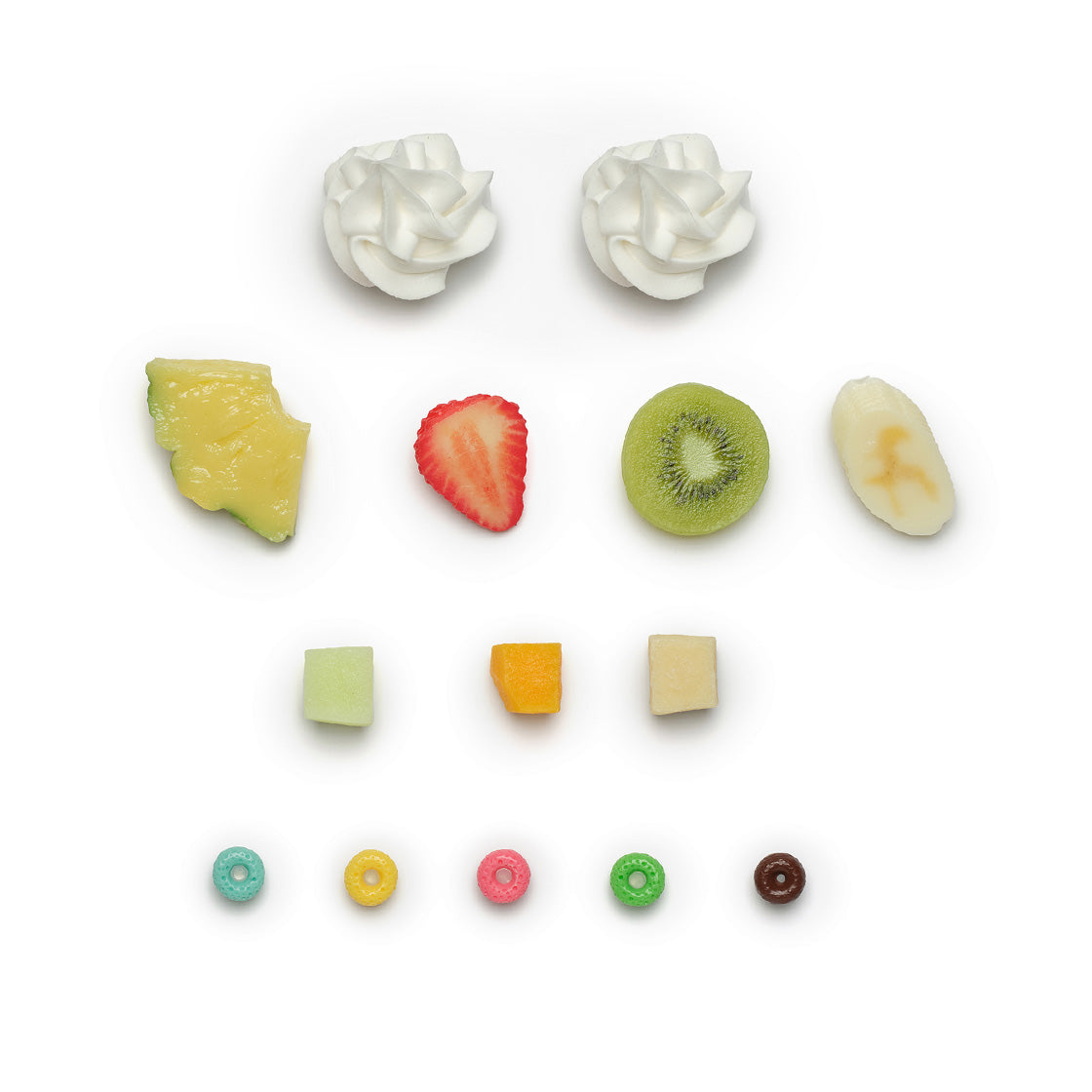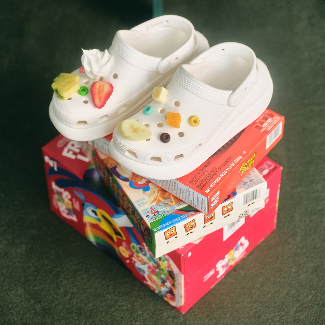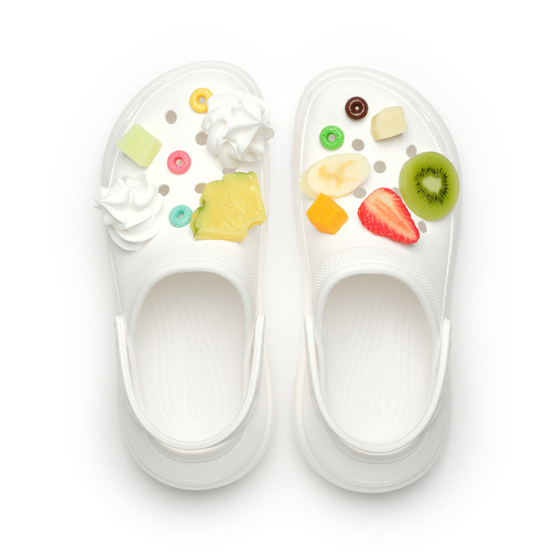 This pip set looks like a generous scoop of yogurt ice cream topped with colorful fruits and cereal. The vibrant color combination and detailed textures add a cheerful, playful mood to your shoes.
